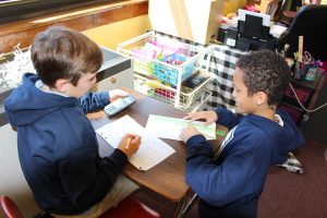 Focusing on the skills of measurement, scale, ratio, area, and perimeter, the students were tasked with, “Designing their own dream houses by creating a scale drawing using architecture symbols.” Using price comparison and estimation, the students were then charged with figuring out a logical “price quote” for the papering, painting, and flooring of their imagined homes. As if this project wasn’t fun and interdisciplinary enough, Mrs. Coombe then rolled their designs into a real-world application by having the students present their proposals to a professional architect (Mrs. DeReus’ husband) from A. Perry Homes.